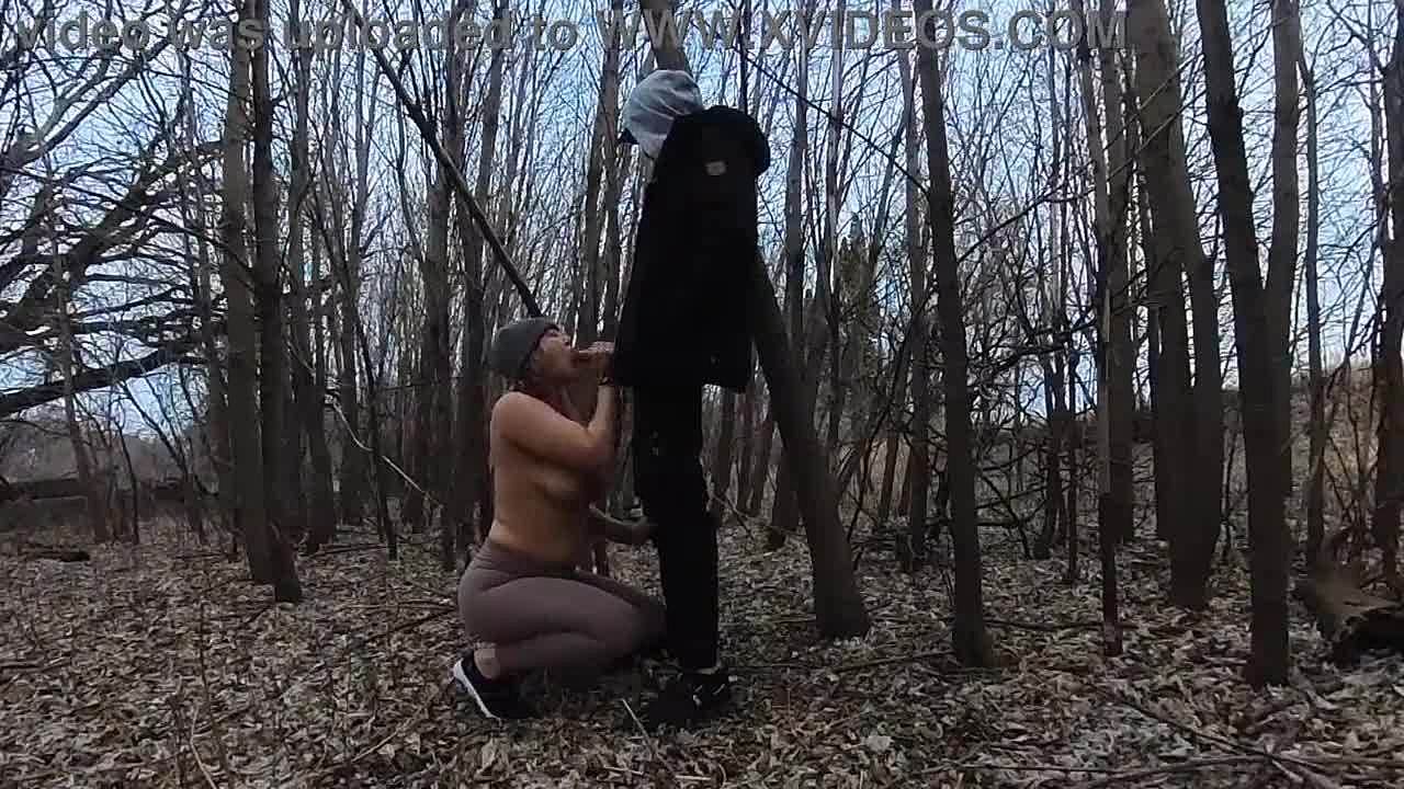 Chubby Russian Amateur Sucking Cock in Public Outdoor Scene