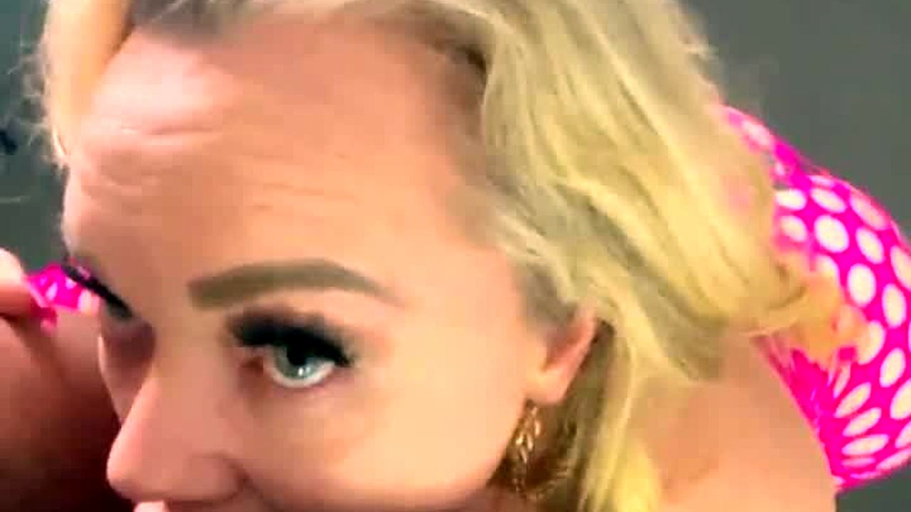 Slutty blonde passionately sucks big dick in POV. She swallows every drop of cum with a naughty grin.