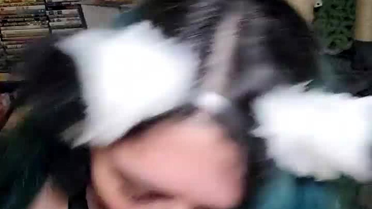 Shego explores new sensations with a toy.