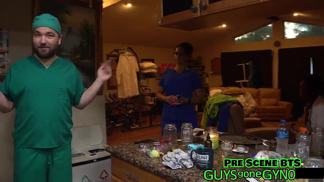 Doctor and nurse ask dazzling babe to strip for group doggystyle