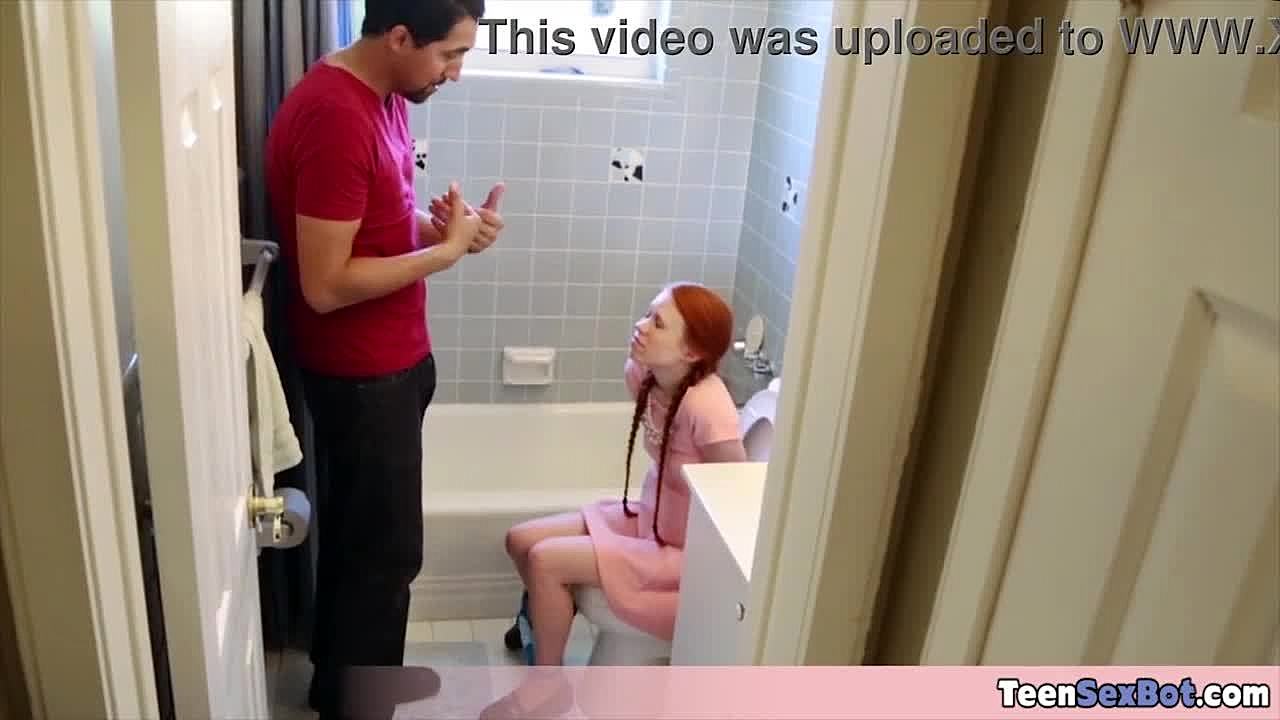 Redhead teen teases stepdad with her tight pussy flash